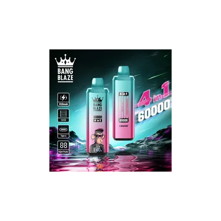 Puff bang blaze 60,000 bouffées avec un système unique de quatre-réservoir, permettant aux utilisateurs de basculer entre les quatre saveurs facilement. Avec un élégant écran LED et les saveurs de fruits , il est idéal pour découvrir une nouvelle façon de vapoter .